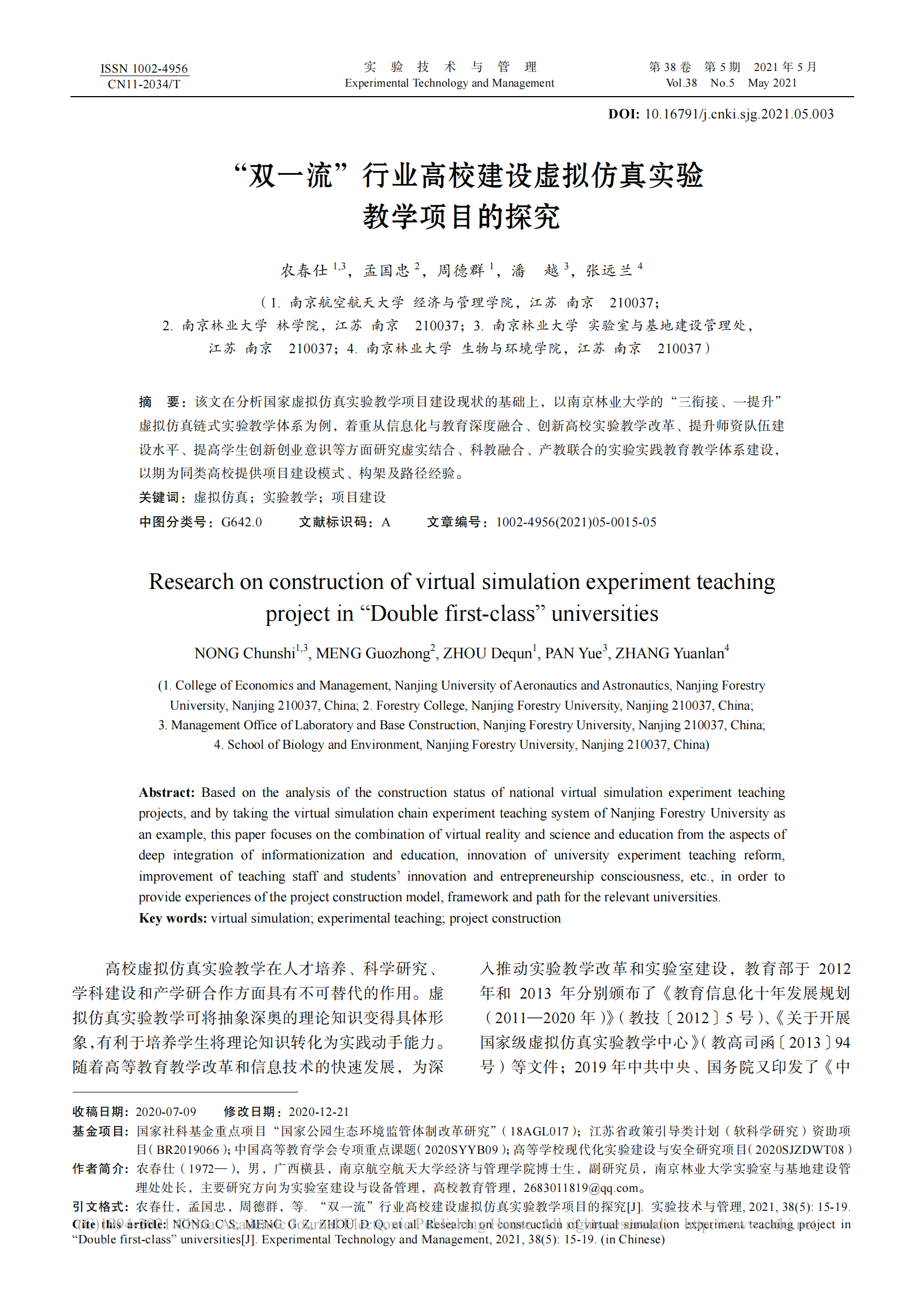 双一流_行业高校建设虚拟仿真实验教学项目的探究_农春仕